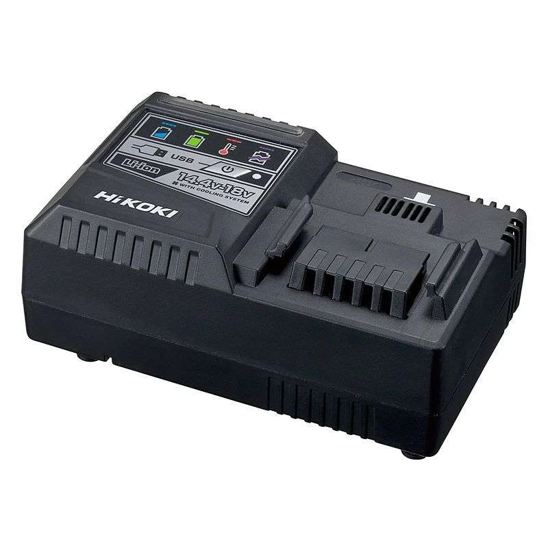 Chargeur d’accumulateur ventilé pour les batteries de marque Hitachi de 14.4V à 18V avec un port USB.