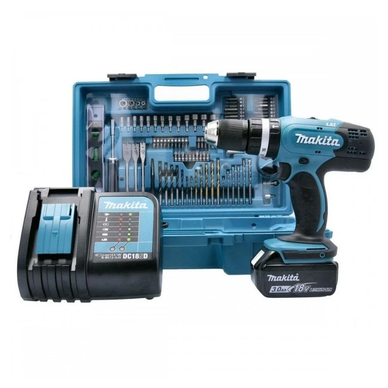 Avantages produit Perceuse à percussion 18V (1×3,0 Ah) MAKITA DHP453FX12 en coffret avec 101 accessoires :